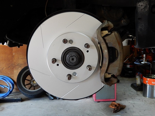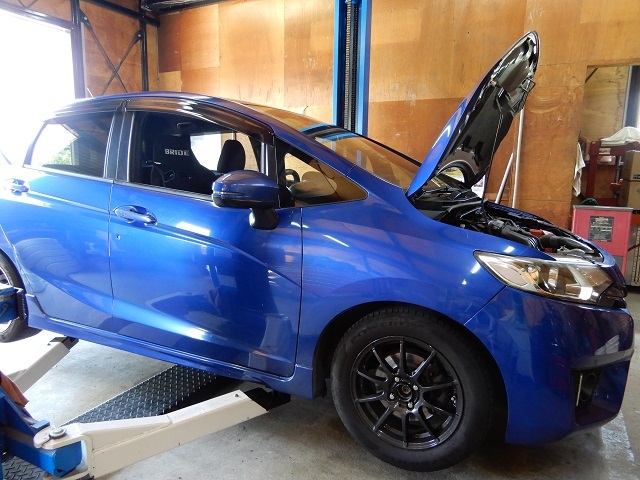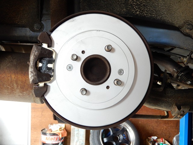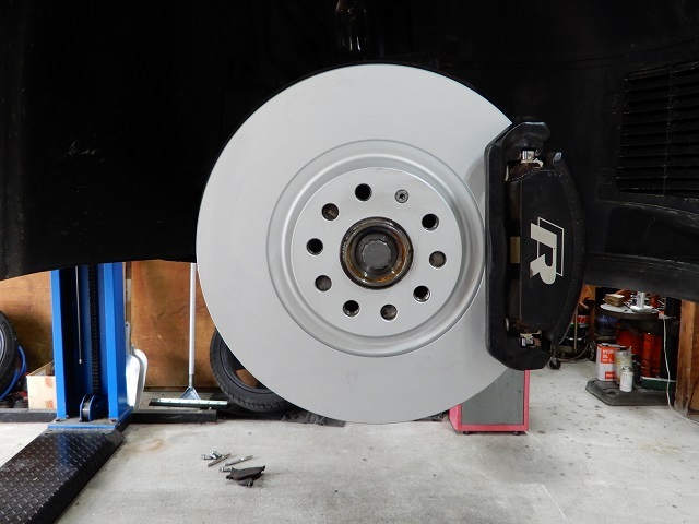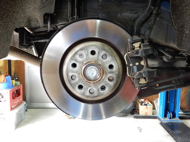 昨年車検整備を受けられた際にリヤブレーキキャリパーが壊れたそうで、中古でキャリパー交換した際にリヤパッドが純正に戻されたことから前後のブレーキの効きにアンバランスが生じた事と、ブレーキ鳴きが発生した事により今回前後ブレーキパッド交換となりました。