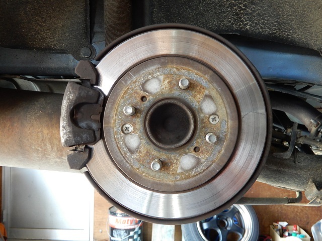 交換されたリヤブレーキキャリパーの取り付けもスライドピンが錆びて動きが悪い状態であり、キャリパーの取り外しに結構な時間が掛かりました。